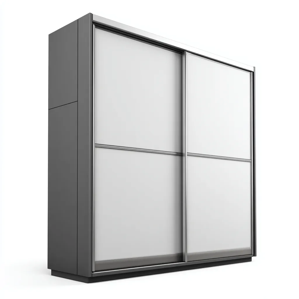 Armadio con ante scorrevoli dal carattere moderno e deciso, progettato per offrire una soluzione funzionale per l’organizzazione dell’abbigliamento in ambienti contemporanei. Il contrasto tra superfici chiare e struttura scura valorizza lo spazio e conferisce un aspetto ordinato e professionale a camera da letto o zona guardaroba.