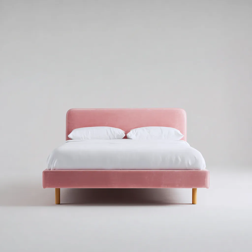 Struttura portante realizzata in legno con rivestimento in tessuto di colore rosa. La superficie risulta uniforme e piacevole al tatto, con una lavorazione curata adatta a un utilizzo continuativo.